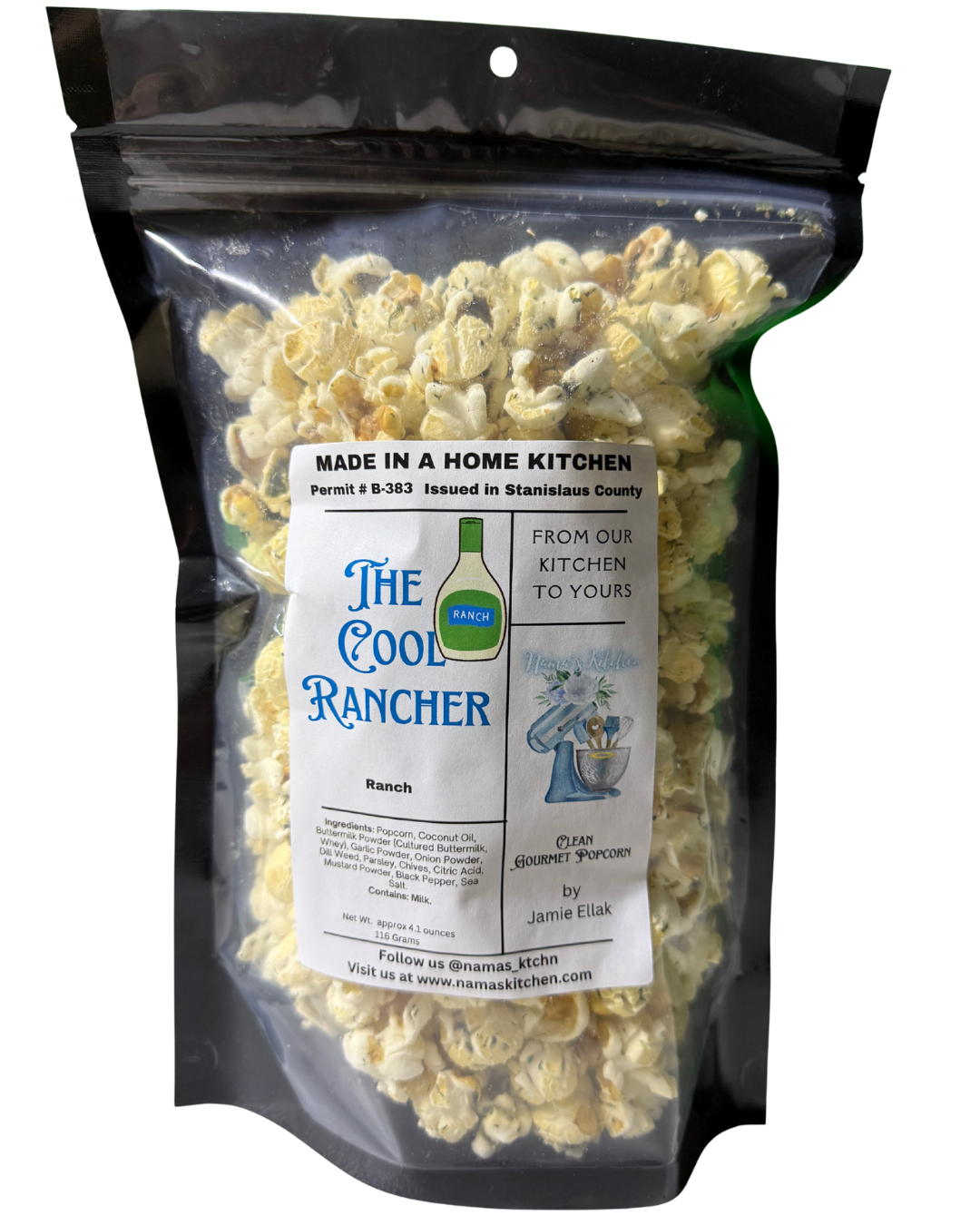 Cool, herby, and better than the bottle. Ranch popcorn made with real buttermilk and spices — clean ingredients, big flavor.